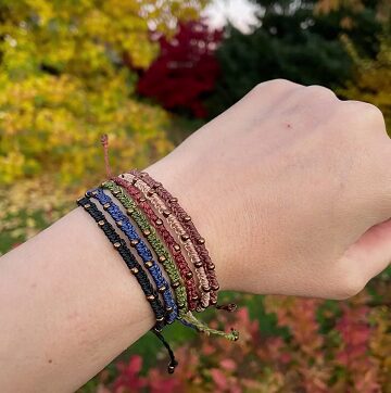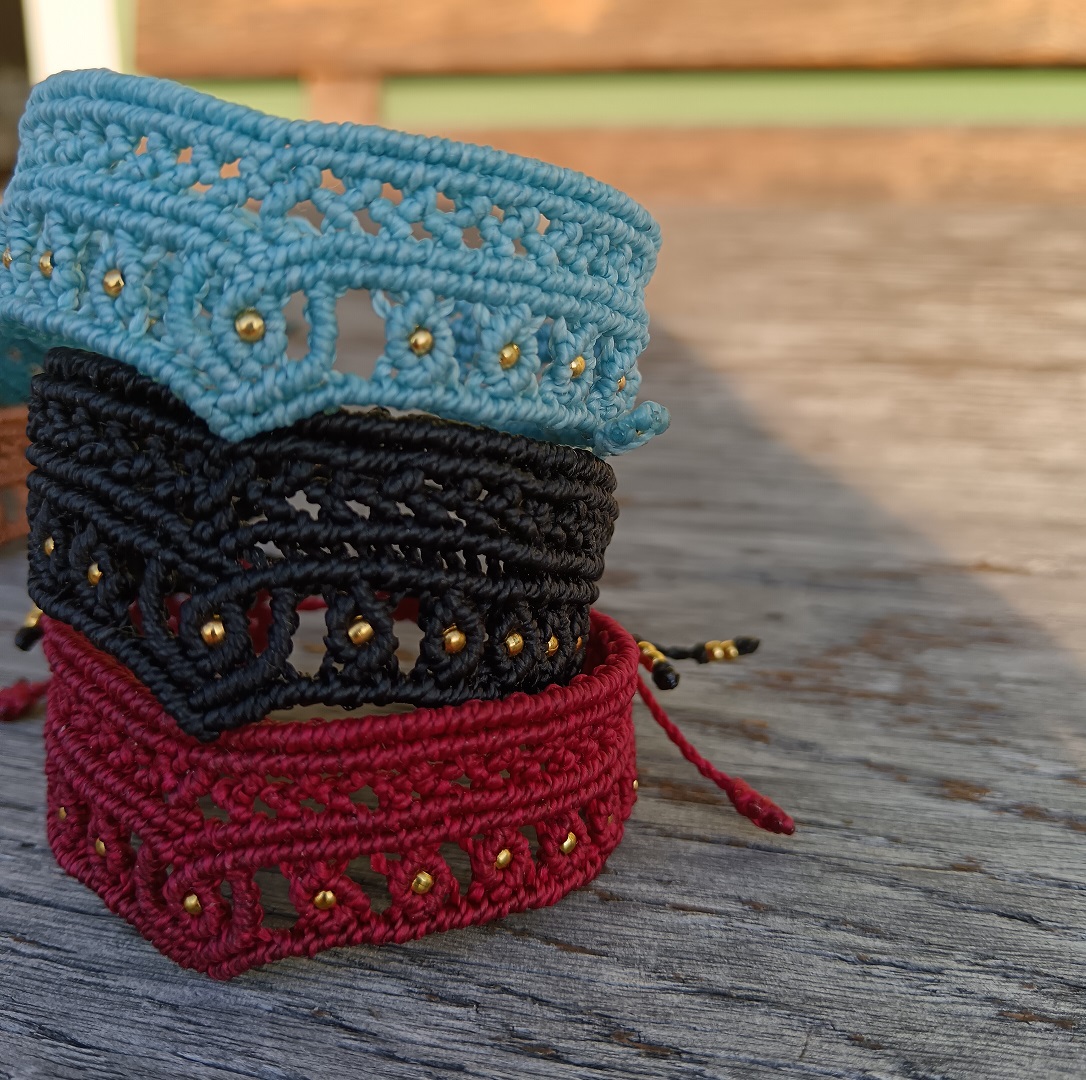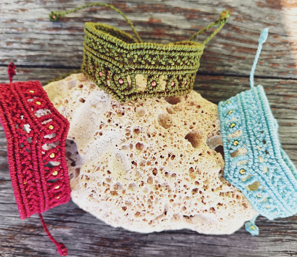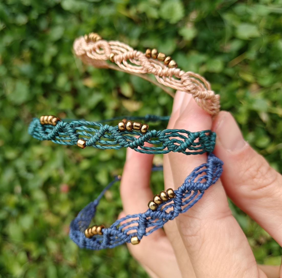 Poleg naštetih, pa se ob izdelavi zapestnic najraje prepuščam intuiciji. Vsak dan nastajajo torej nove oblike, nekatere pa so mi tako ljube, da jih izdelah večkrat. Obožujem indijansko-baročni stil zapestnic, ki vsebuje pridih elegance, kot tudi divjosti. Preveri, morda te kakšna pokliče in jo lahko zvozličkam zate.