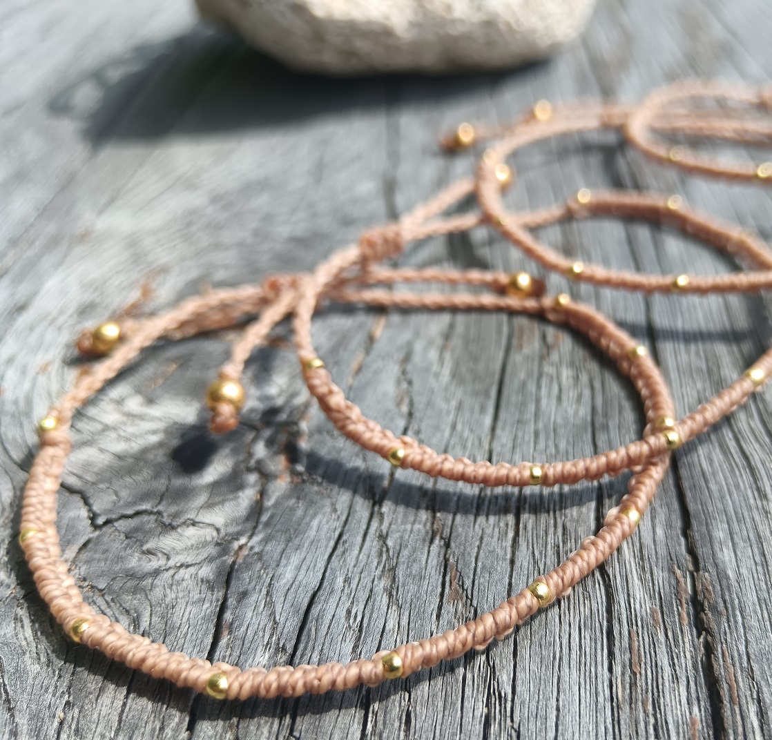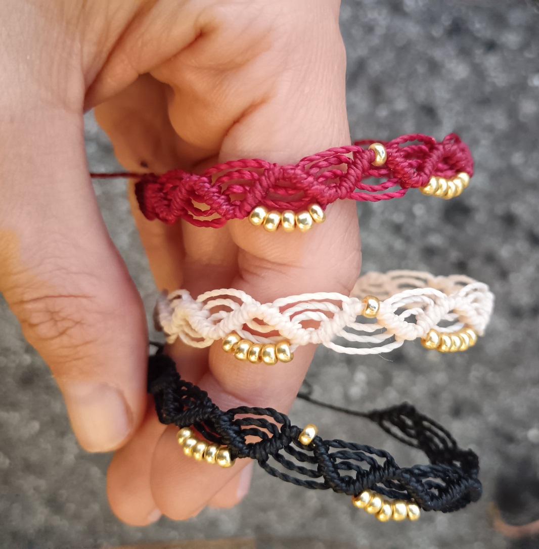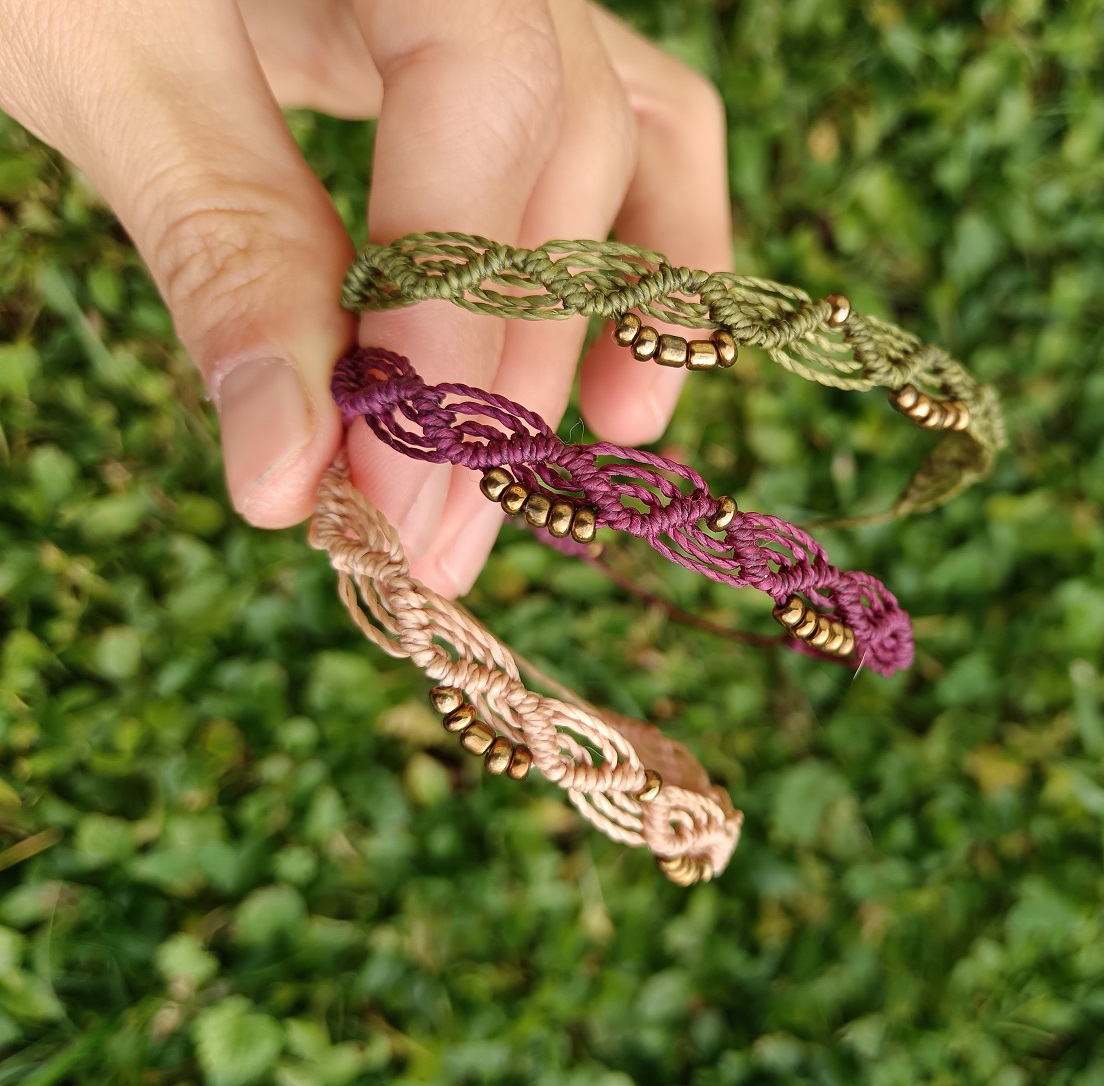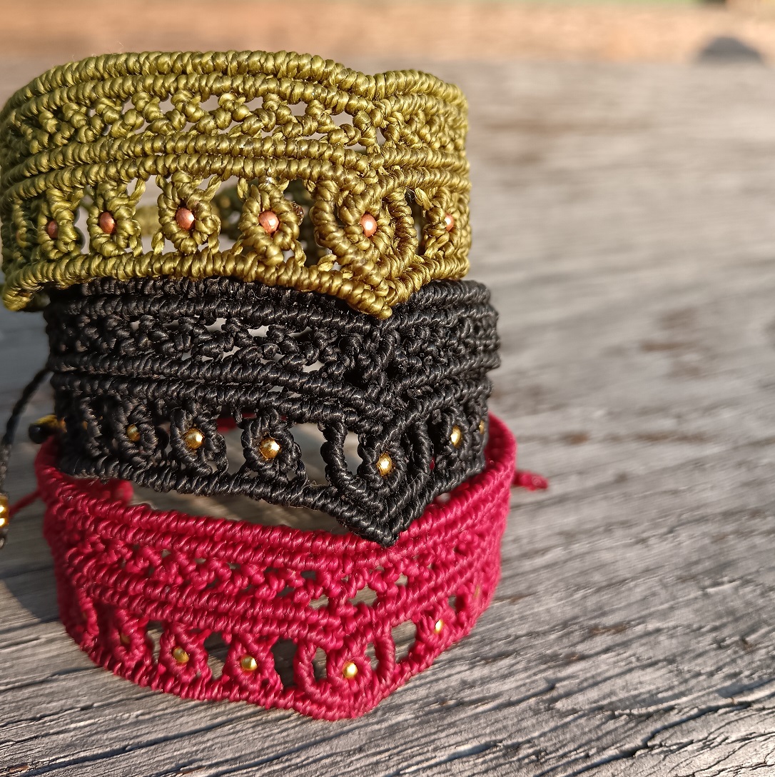 Poleg naštetih, pa se ob izdelavi zapestnic najraje prepuščam intuiciji. Vsak dan nastajajo torej nove oblike, nekatere pa so mi tako ljube, da jih izdelah večkrat. Obožujem indijansko-baročni stil zapestnic, ki vsebuje pridih elegance, kot tudi divjosti. Preveri, morda te kakšna pokliče in jo lahko zvozličkam zate.