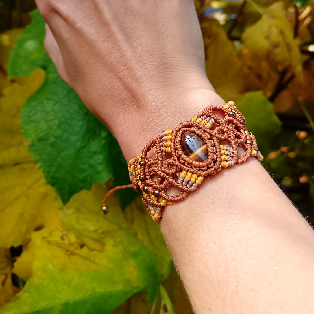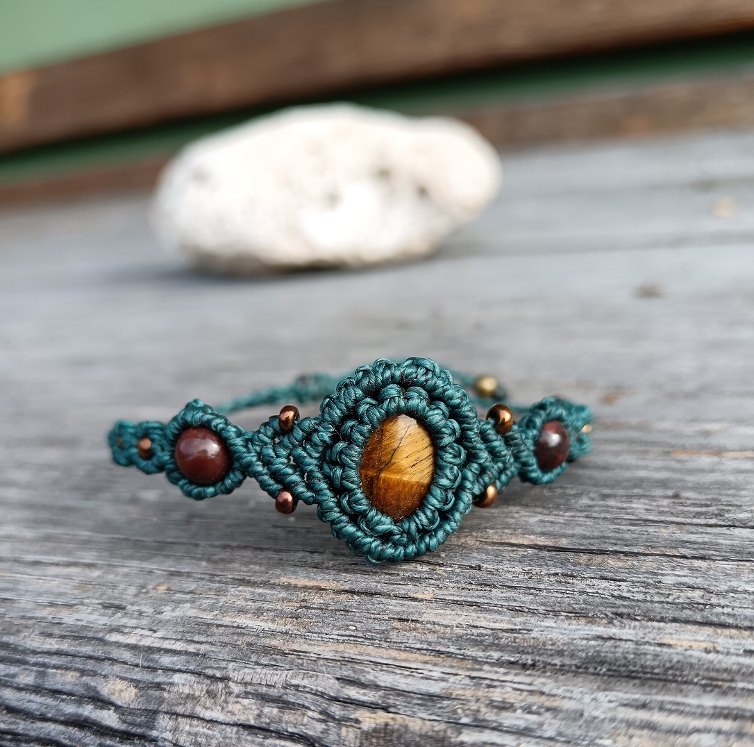 V tej zapestnici se skriva kristal TIGROVO OKO, ki nam daje moč, pogum, jasnost in odločnost. Z njim smo nepremagljivi in pripravljeni na akcijo.