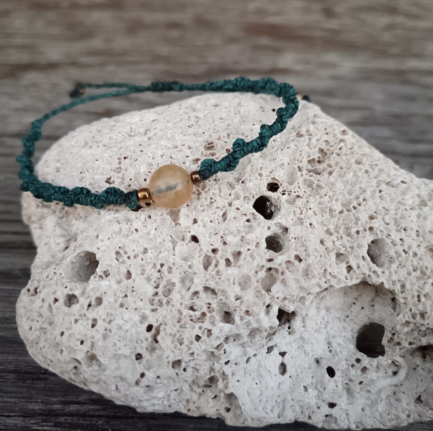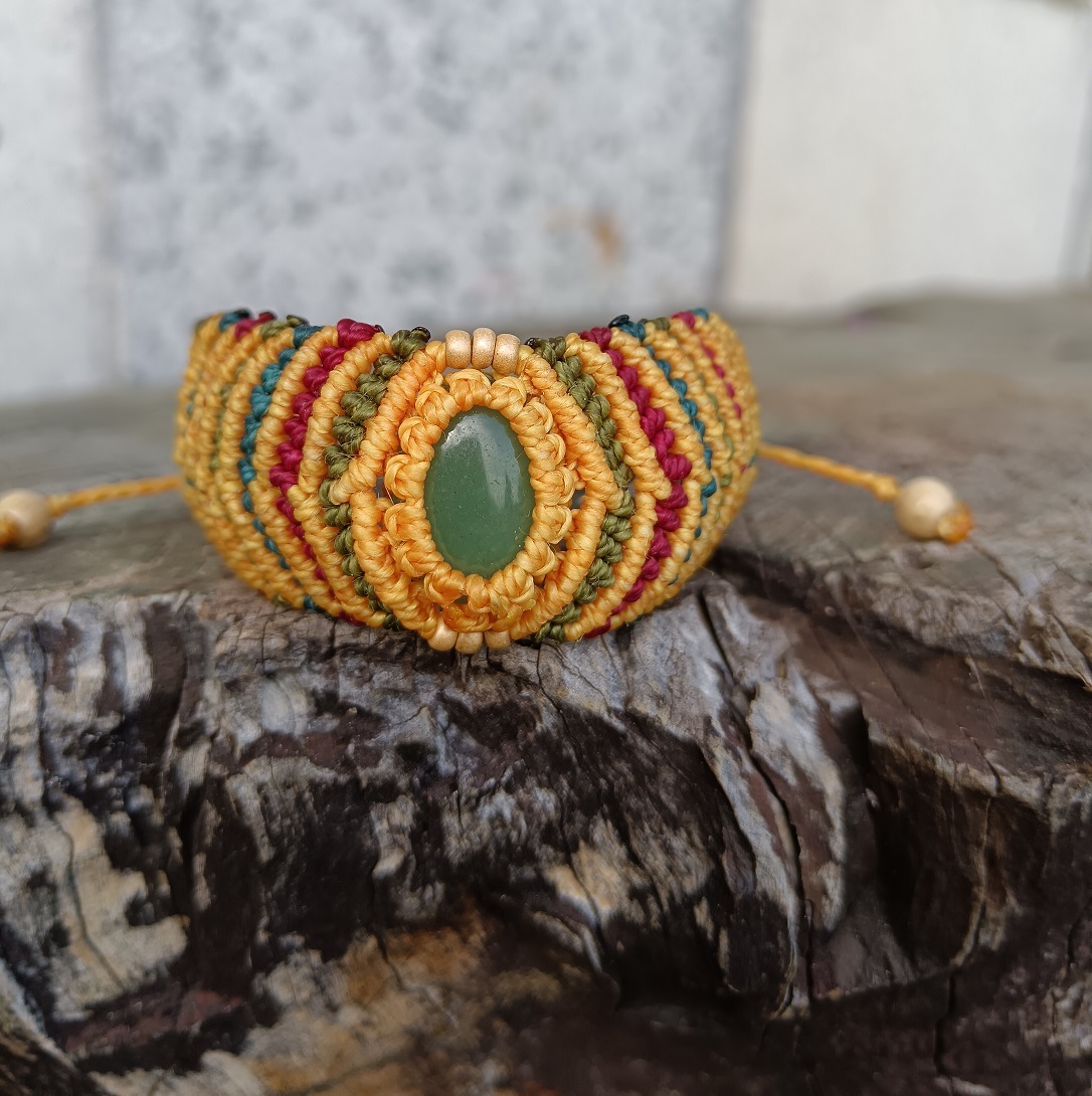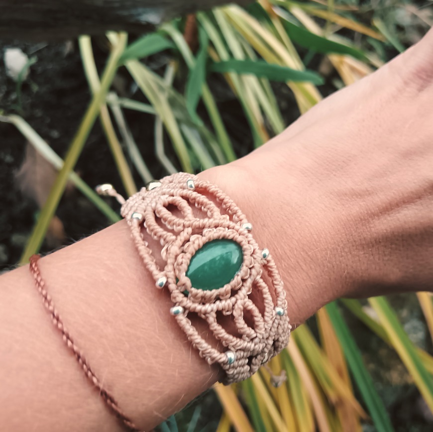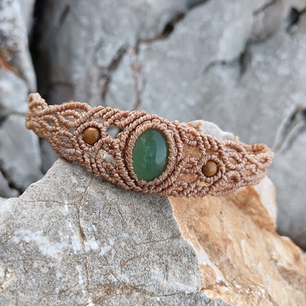 V tej zapestnici je ujet kristal ZELENI AVENTURIN, ki kliče po ljubezni, odpiranju srca, odprtosti, sprejemanju in veselju.