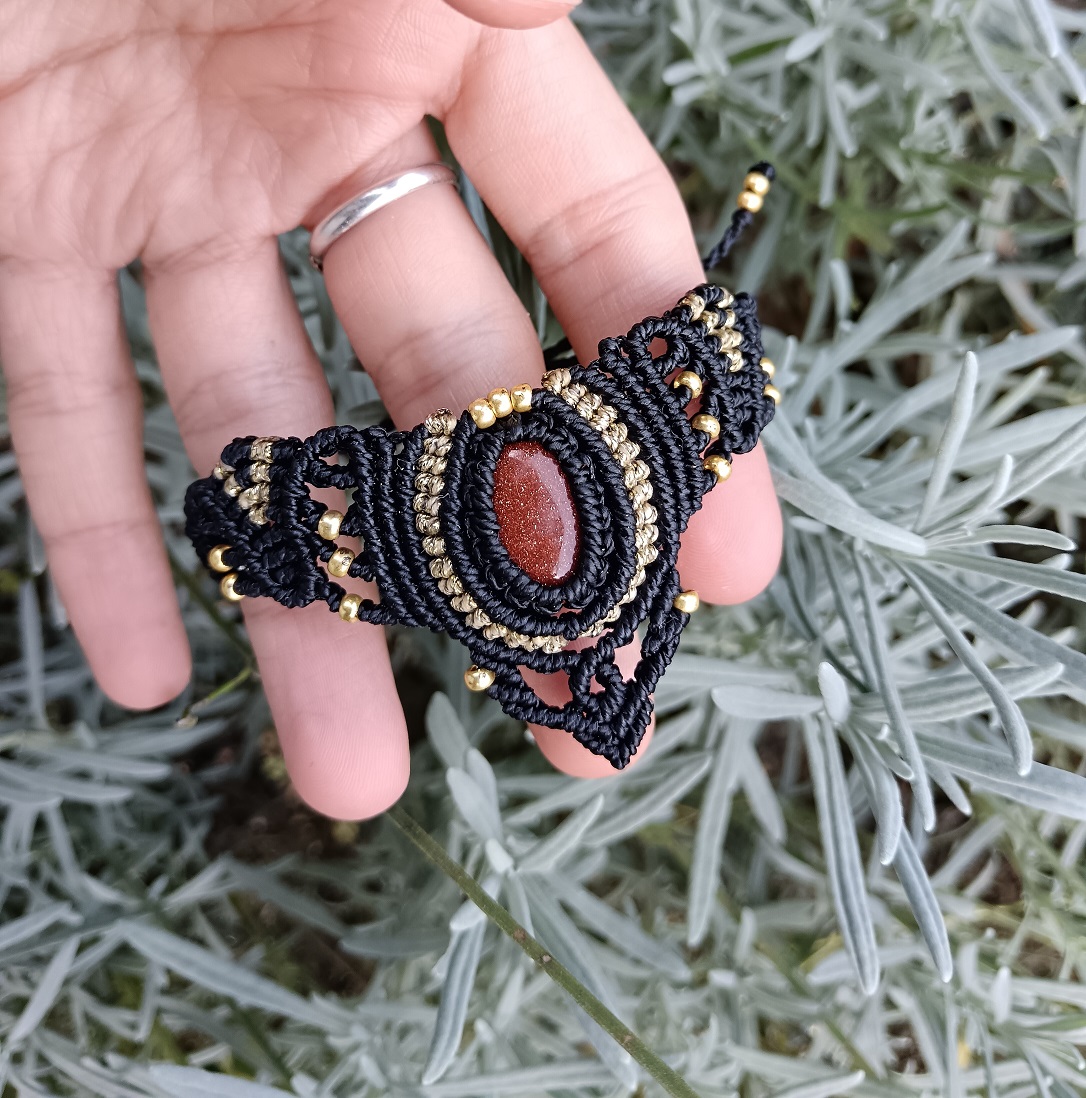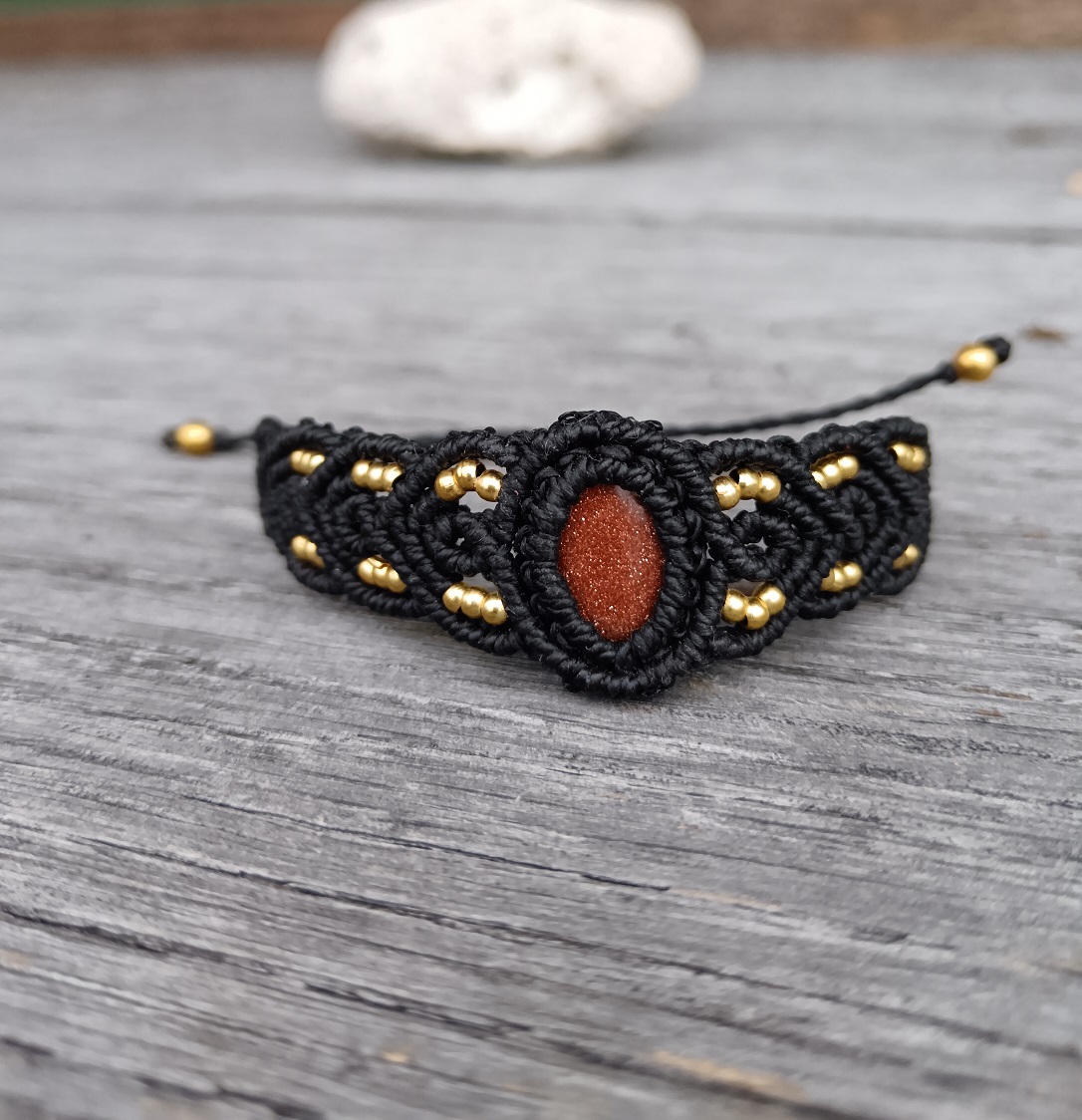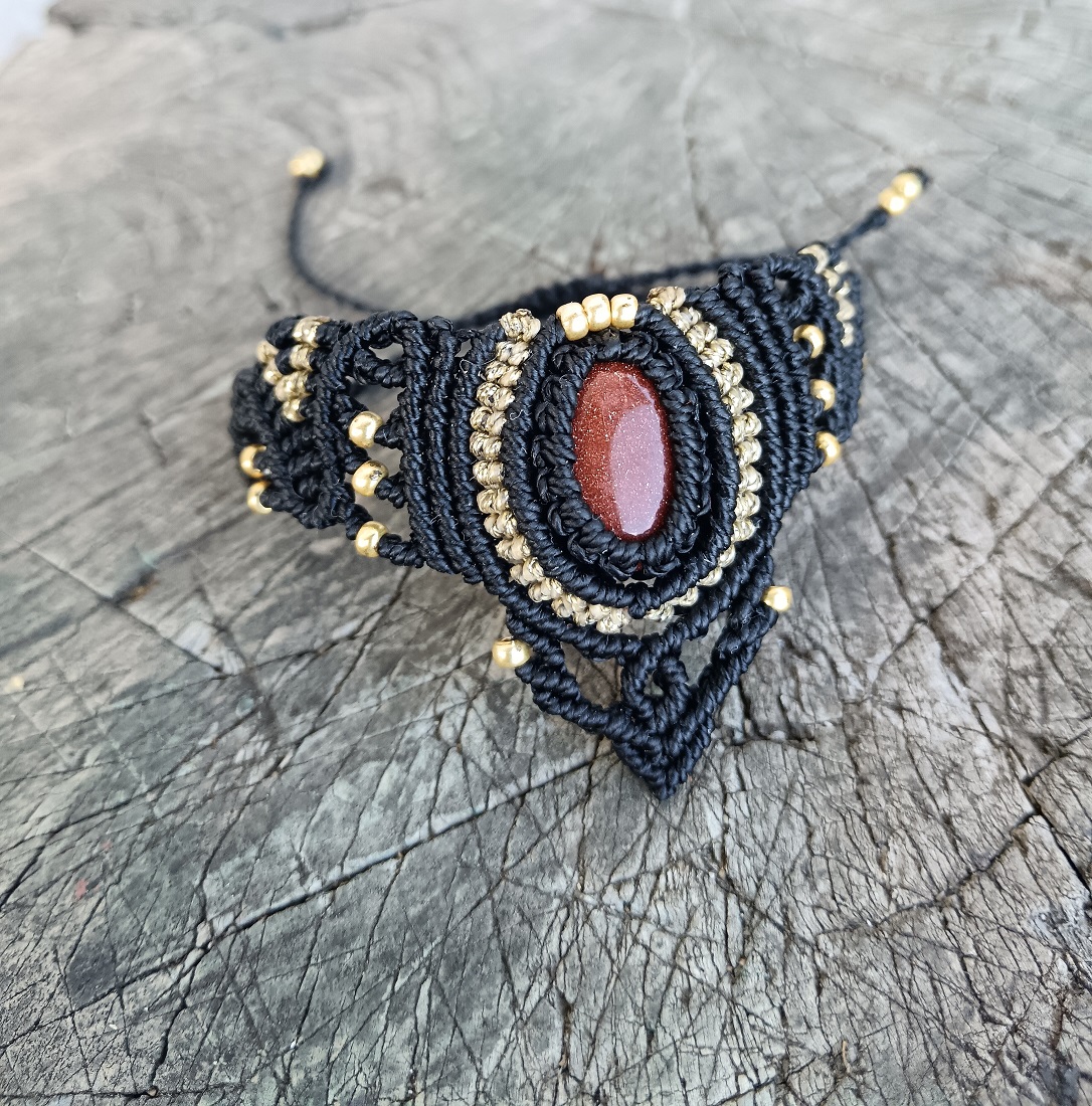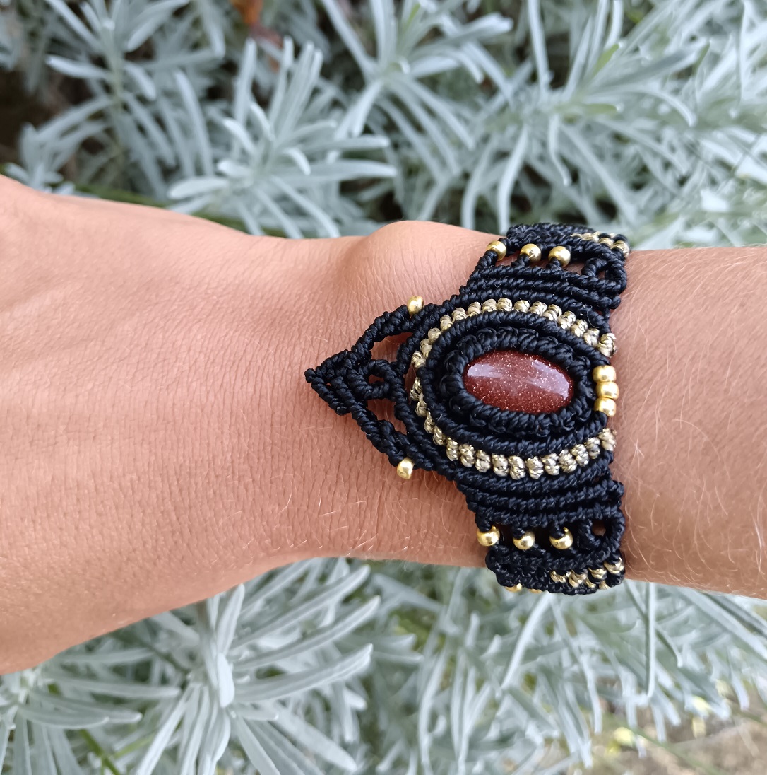 Črna zapestnica ima kristal ZLATI PEŠČENJAK, RDEČI JASPIS ali KARNEOL.